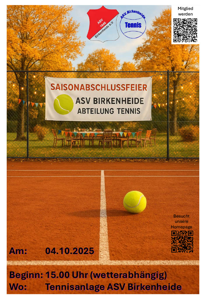 Upcoming: 04.10.2025 Saisonabschlussfeier der Tennisabteilung!